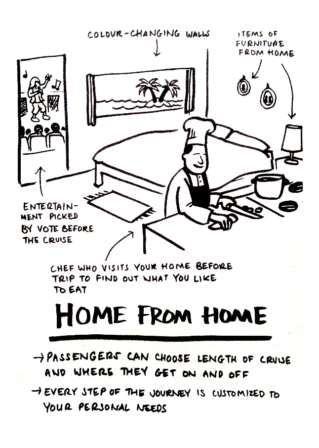 Most of the live illustration which I produce in ideation sessions / brainstorms / workshops is rightly locked down by NDA, but occasionally I work on sessions where the ideas are completely unconnected to the client’s work – and often completely bizarre! – the object being to encourage broad creative thinking by getting participants to generate ideas for sectors unrelated to those which they usually work in.